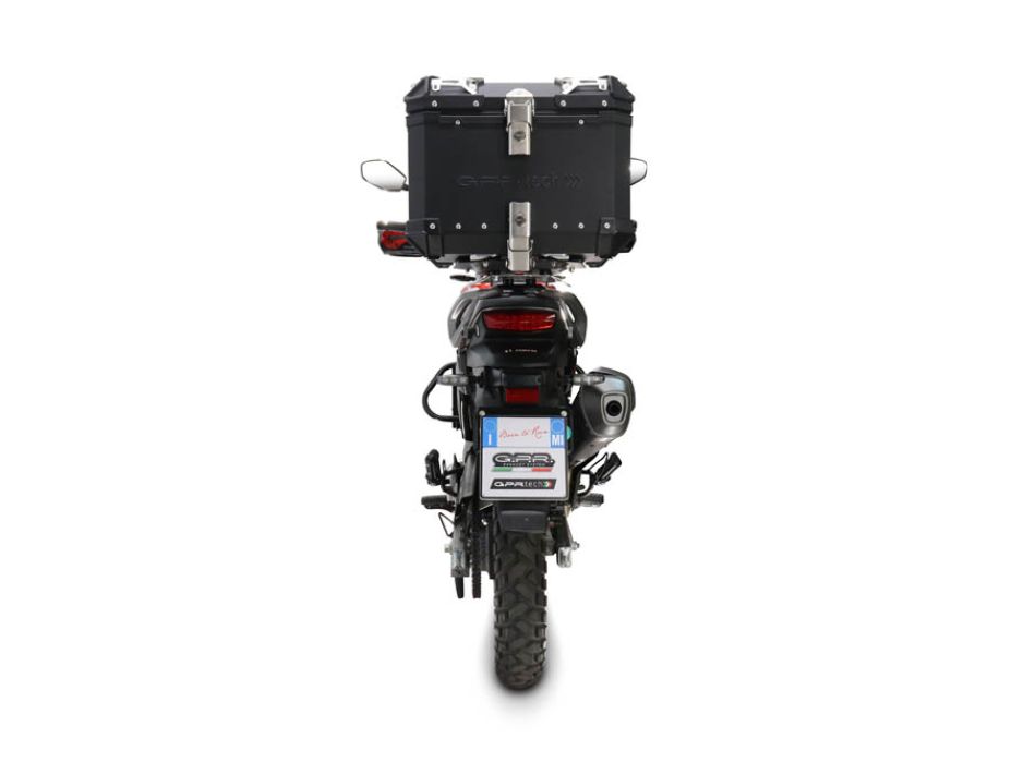 L'installation est possible grâce à la plaque spécifique et aux adaptateurs GPR TECH, cependant si vous installez le produit sur un porte-bagages non d'origine ou sans adaptateurs GPR TECH, vous devez vérifier que la plaque comporte au moins 4 points de fixation, sans ce minimum GPR TECH n'assume aucune responsabilité pour l'instabilité et donc le danger potentiel d'utilisation.