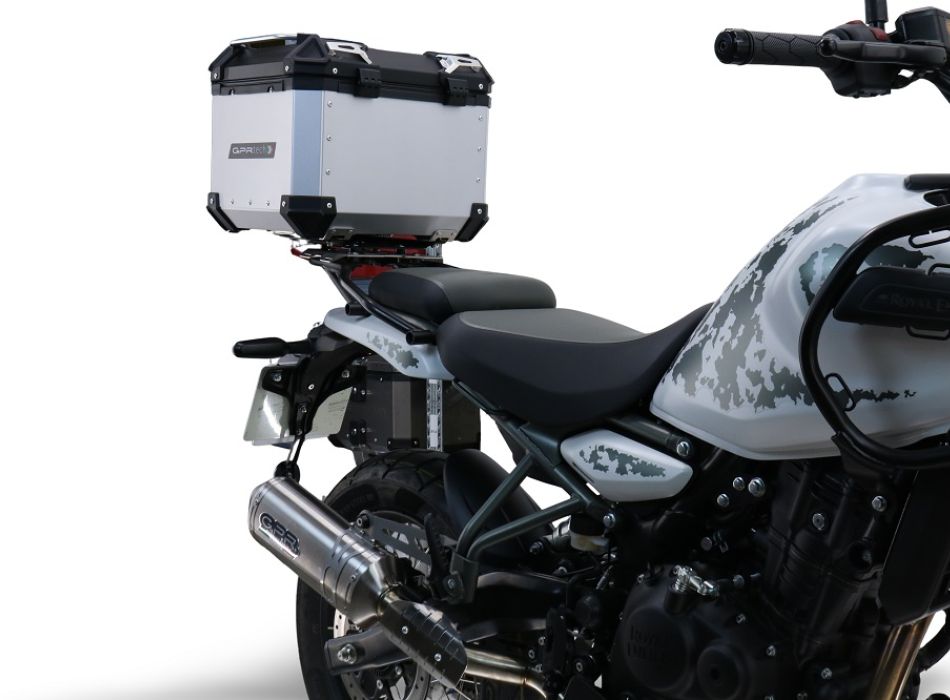 Top case GPR TECH compatible with Royal Enfield Himalayan 450 2024/2025 e5 Plus Top Case Alpitech en aluminium, couleur noire avec plaque spécifique incluse Capacité Litres 35