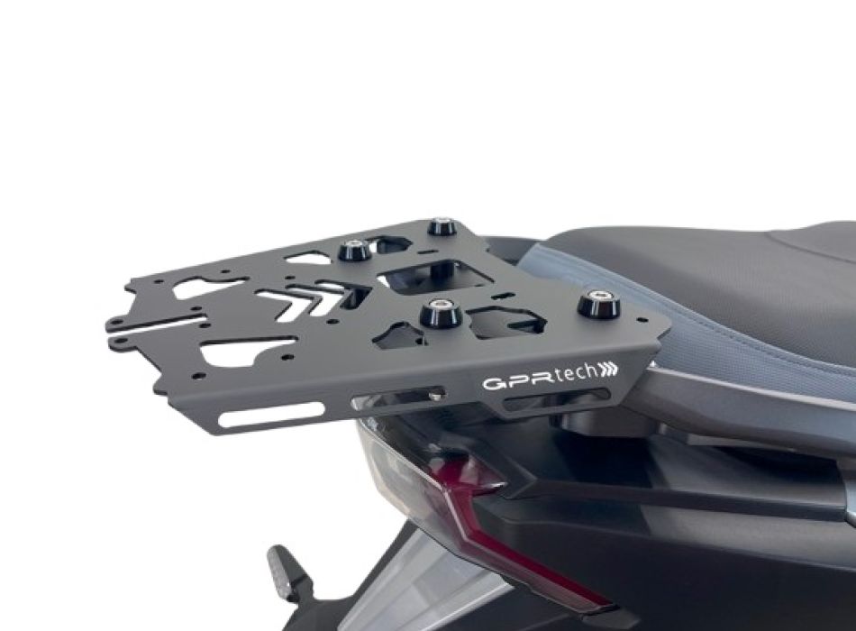 L'installation est possible grâce à la plaque spécifique et aux adaptateurs GPR TECH, cependant si vous installez le produit sur un porte-bagages non d'origine ou sans adaptateurs GPR TECH, vous devez vérifier que la plaque comporte au moins 4 points de fixation, sans ce minimum GPR TECH n'assume aucune responsabilité pour l'instabilité et donc le danger potentiel d'utilisation.