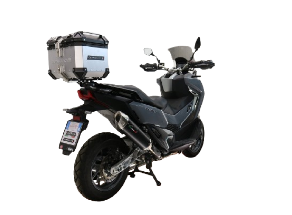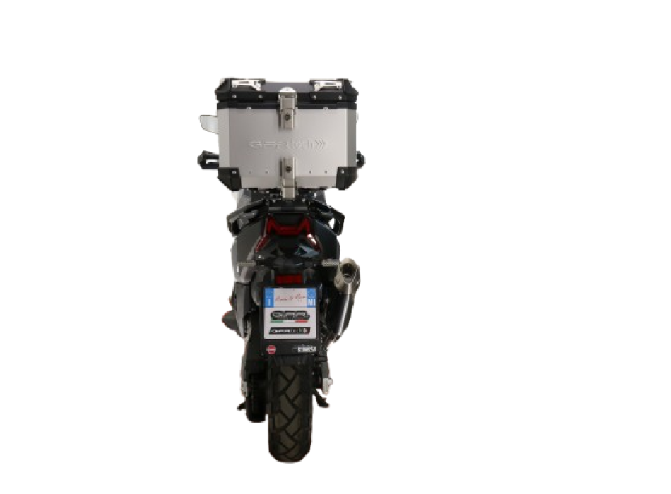 Top case GPR TECH compatible with Sym ADX TG 400 2024/2026 e5 Plus Top Case Alpitech en aluminium, couleur argent avec plaque spécifique incluse Capacité Litres 26